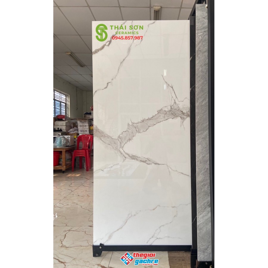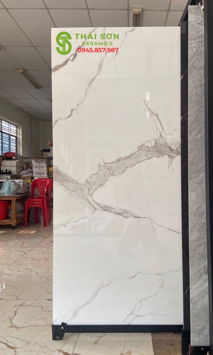Gạch bóng kiếng 90x180 trắng vân mây nhập khẩu