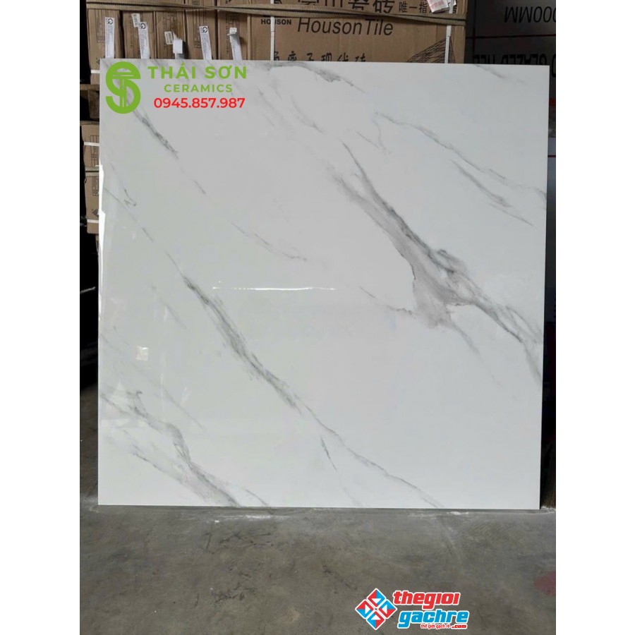 Gạch ấn độ 120x120 màu trắng vân mây bóng kiếng