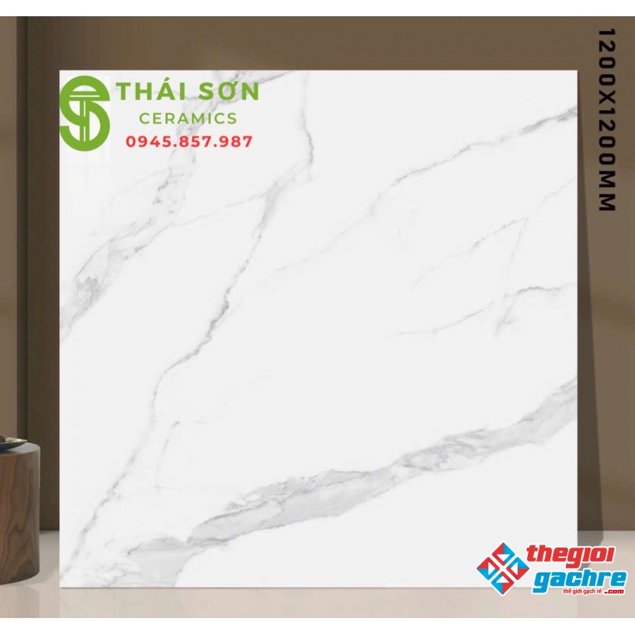 Gạch lát nền 120x120 màu trắng vân mây bóng kiếng